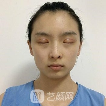 從術(shù)前的照片來看,求美者的眼睛還是有點微腫的,所以,她這種情況也特別適合做吸雕雙眼皮。